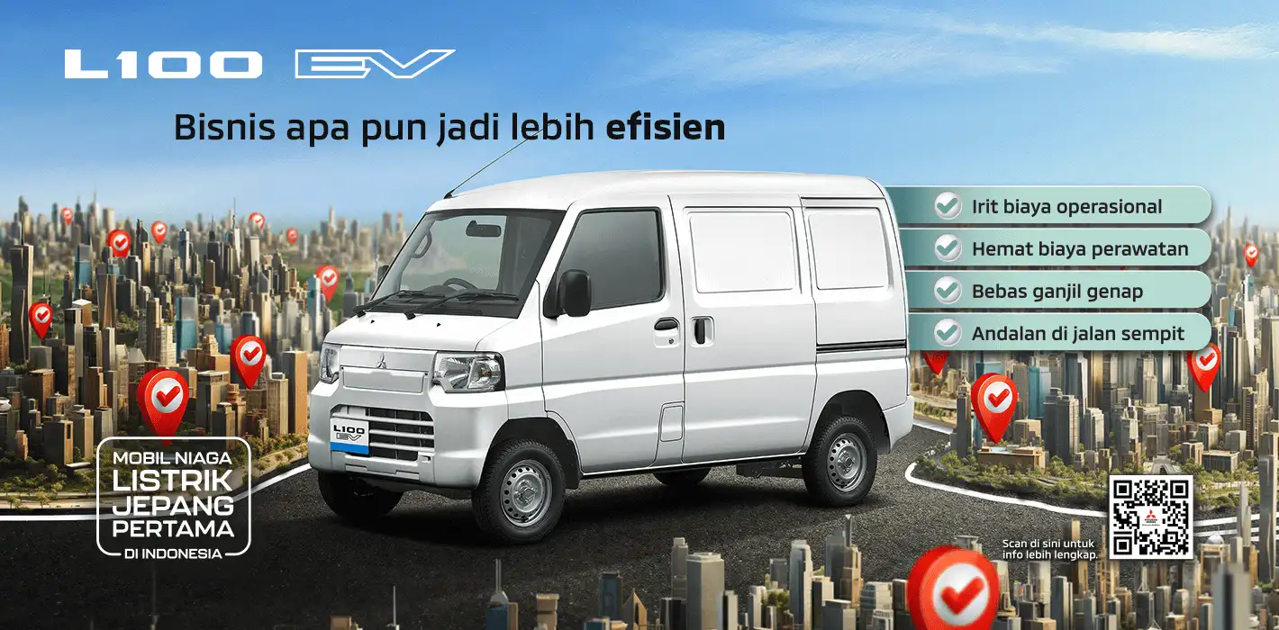 Mitsubishi L100-EV di Indonesia merupakan model kei-car kendaraan niaga ringan berbasi baterai dan dilengkapi komponen listrik termasuk motor dan penggerak baterai. Keunggulan radius putar kecil dan body yang compact memudahkan Anda menjelajah kemana saja dengan daya angkut yang besar hingga 350 kg dengan 2 penumpang atau 425b kg dengan satu penumpang sehingga waktu operasional menjadi lebih efisien.